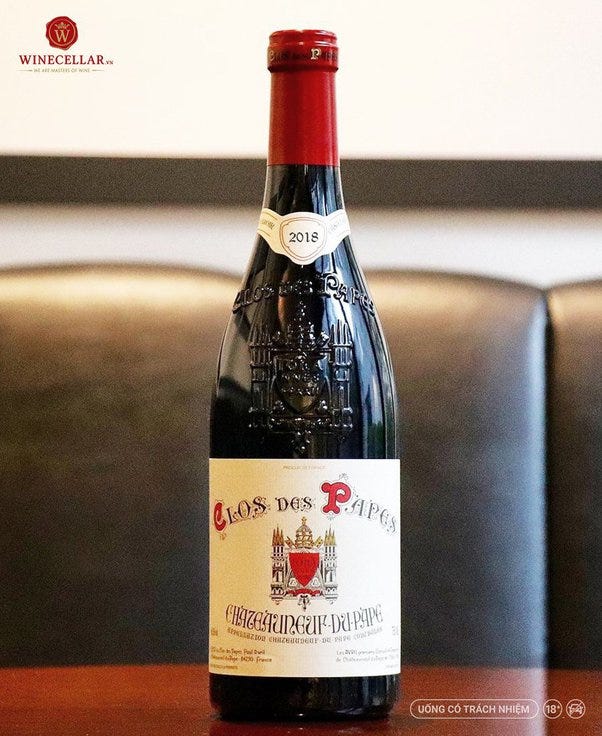 Clos Des Papes Chateauneuf-Du-Pape Loại rượu ngon nhất dành cho phái mạnh. Với nồng độ 15%, dòng vang rất thích hợp cho phái mạnh. Clos Des Papes rộng tới 40 ha và được chia thành 3 héc ta trồng nho vang trắng, còn lại là nho vang đỏ. Điền trang chỉ tập trung sản xuất 1 dòng vang trắng và 1 dòng rượu vang đỏ, sản lượng nho cũng được giới hạn vô cùng thấp để có thể bảo đảm được chất lượng rượu cao nhất. Rượu vang từ những giống nho được cho phép tại Châteauneuf-du-Pape thể hiện đầy đủ trọn vẹn tính cách thổ nhưỡng và có khả năng ủ lâu năm. Nho sau khi được ngắt cuống sẽ được ủ trong các vại gỗ lớn để đem lại vị rượu đậm đà, tinh tế.